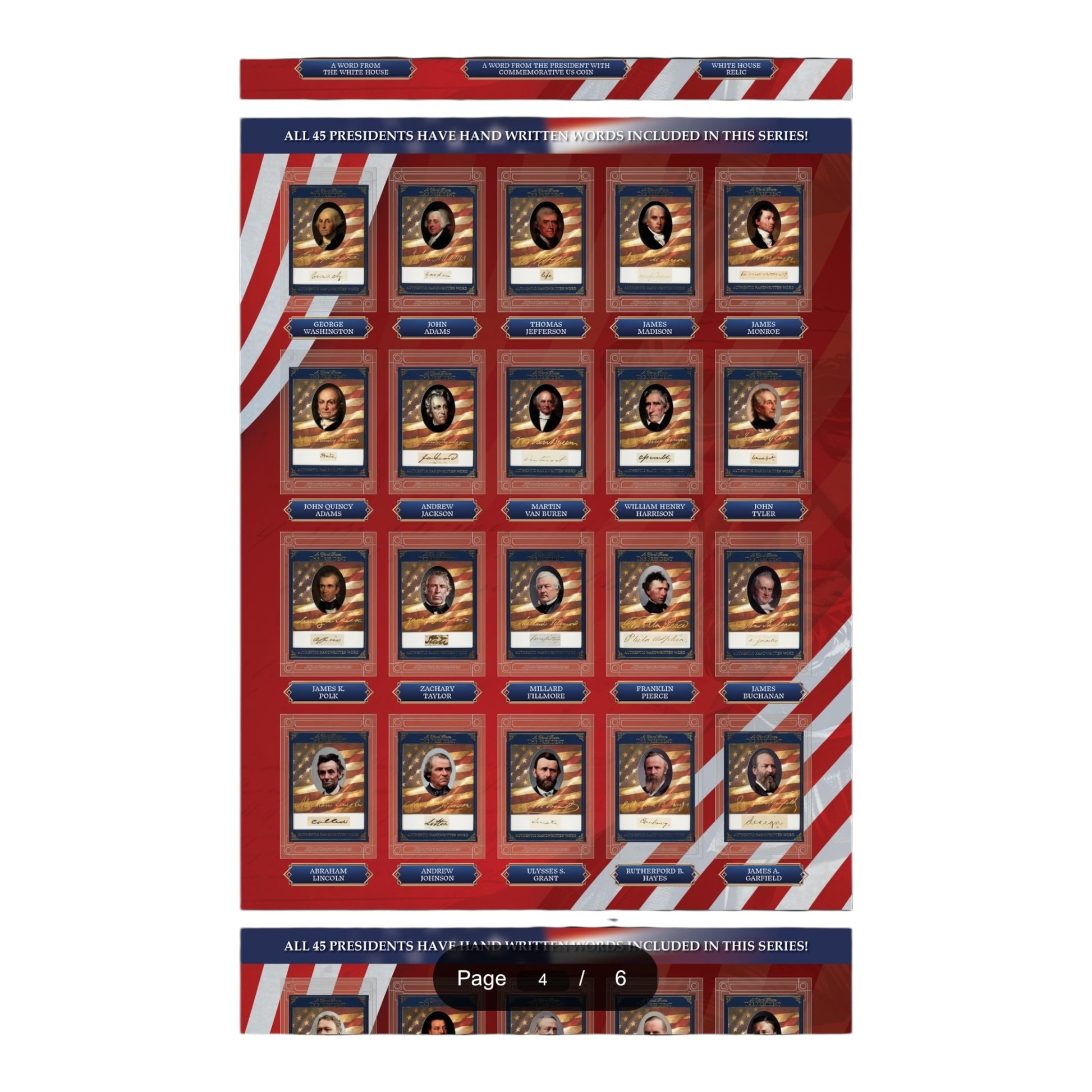 Please note that as each "A Word from the President" card is a unique creation, this set is the set to not feature sequential numbering.